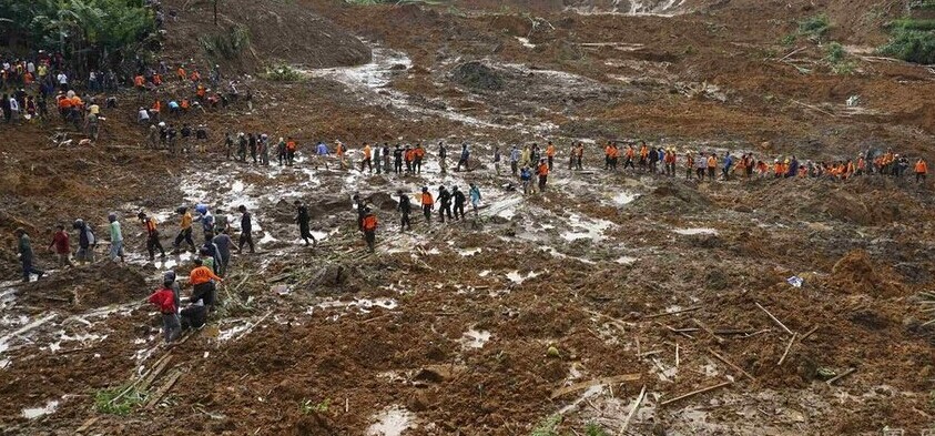 每年11月至次年4月是印尼的雨季,由强降雨和洪水引起的山体滑坡多发。印尼国家抗灾署估计,全国2.5亿人口中,大约一半人居住在山体滑坡易发地区。图为泥石流事故现场。