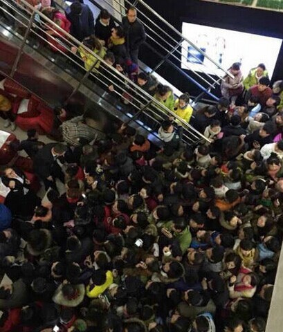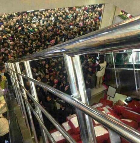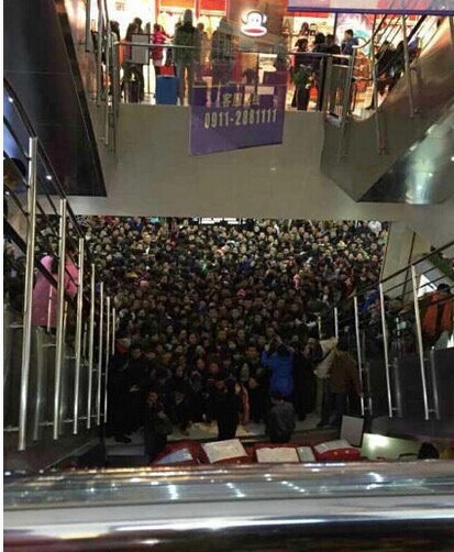 1月3日上午10时许,数百市民前往位于延安双拥大道中段的“延百东大上品”商场,拿手机展示商场所要求集的38个微信“点赞”,争着领取床上用品。