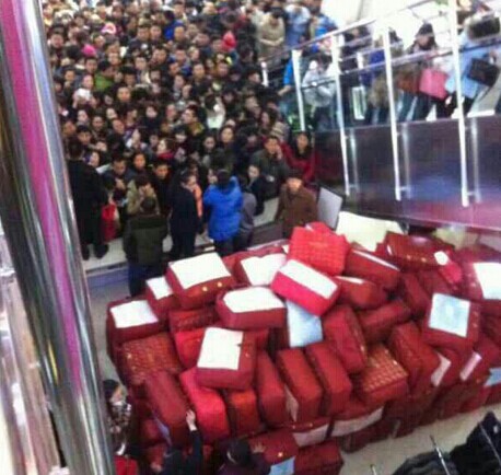 延安一商场送礼品 百余市民争抢