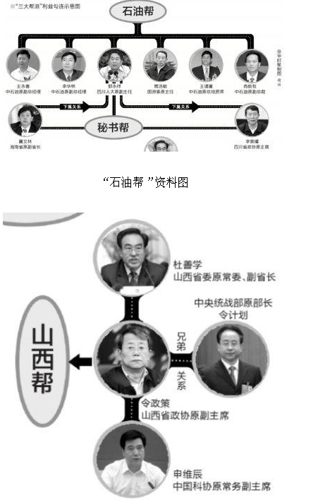 去年12月29日,中共中央政治局召开会议指出:“把党的纪律建设摆在更加突出的位置,强化纪律刚性约束,严明政治纪律和政治规矩,党内决不容忍搞团团伙伙、结党营私、拉帮结派。”昨天,新华社刊发文章指出,近年来落马的一些“大老虎”背后,多有一帮官员与之有着千丝万缕的利益勾连,形成一个个或明或暗,或松散或紧密的“帮派”“团伙”,并首次公开给这些团伙命名为“石油帮”、“秘书帮”、“山西帮”。